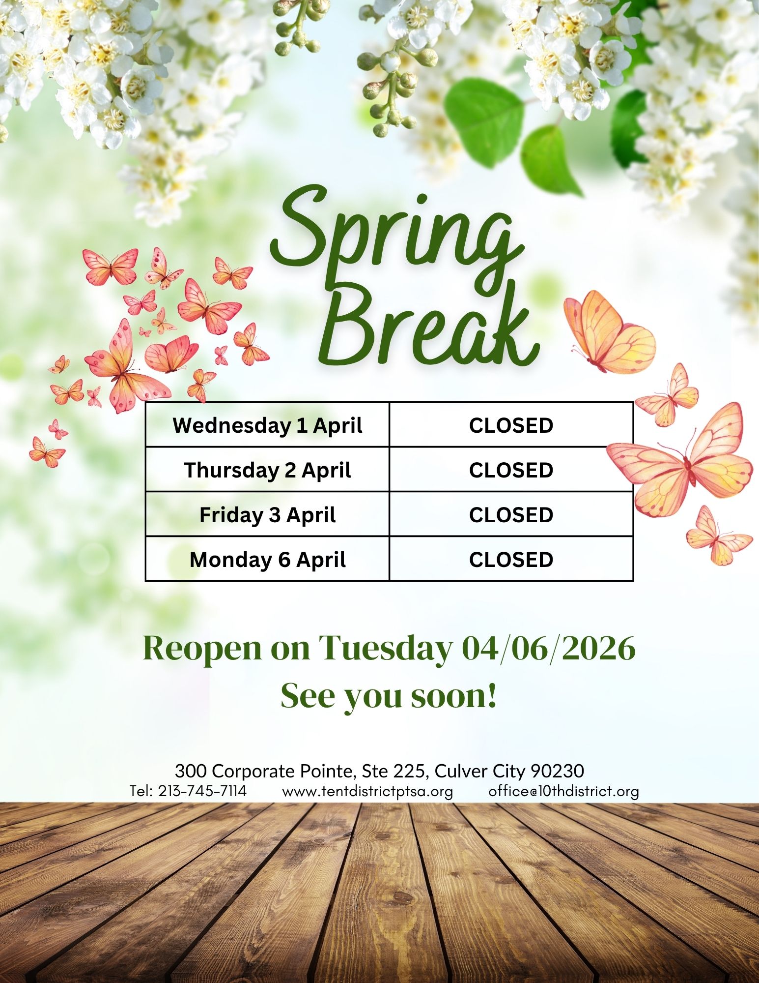 10th District PTSA – Office Closed (Spring Break)